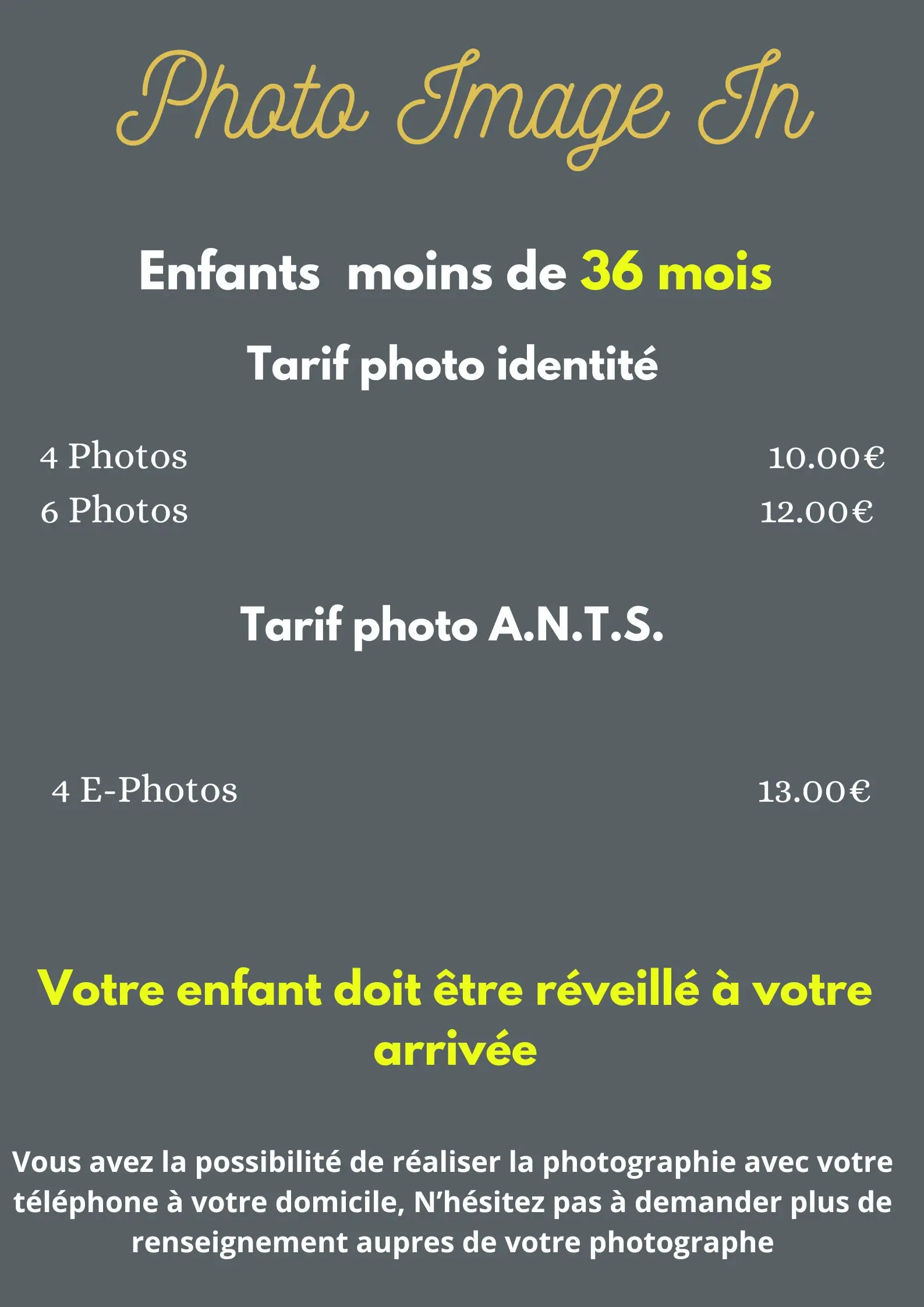 Pour la prise de vue pour les photos d'identité de vos enfants de moins de 36 mois nous vous